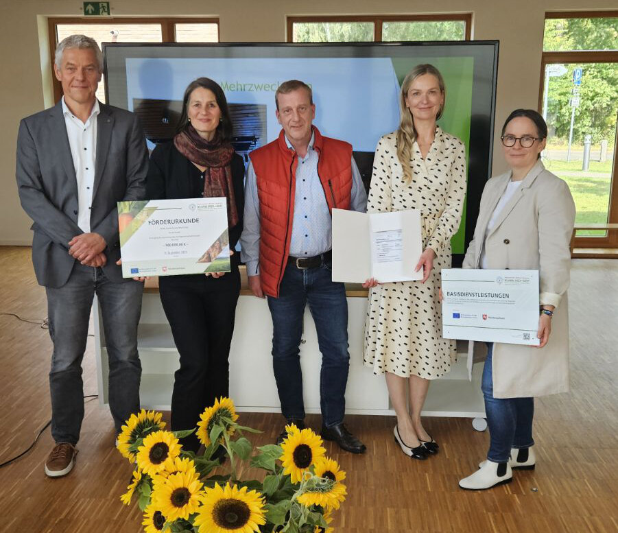 Eine halbe Million Euro stellt das Land Niedersachsen für die energetische Sanierung des Dorfgemeinschaftshauses in Borchel zur Verfügung. Den entsprechenden Förderbescheid nahmen der Rotenburger Bürgermeister Torsten Oestmann und Stadtratsmitglied Mirco Klee aus Borchel nun von Ministerin Miriam Staudte entgegen.